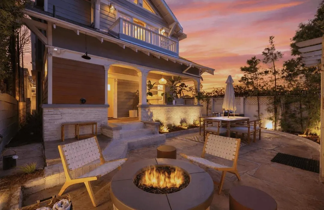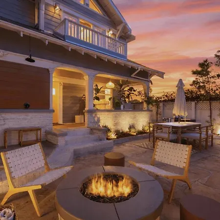 Situated 2.1 km from the Santa Monica Civic Auditorium, Venice Veranda By Avantstay 1 Block To Venice Beach Rare Walk Street Firepit Outdoor Dining Los Angeles villa invites guests to relax at a patio.